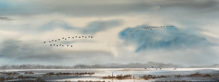 Keith is a self taught contemporary landscape watercolour artist living and working in North Norfolk. He is passionate about the vast, ever changing skies and wildlife of the region.
